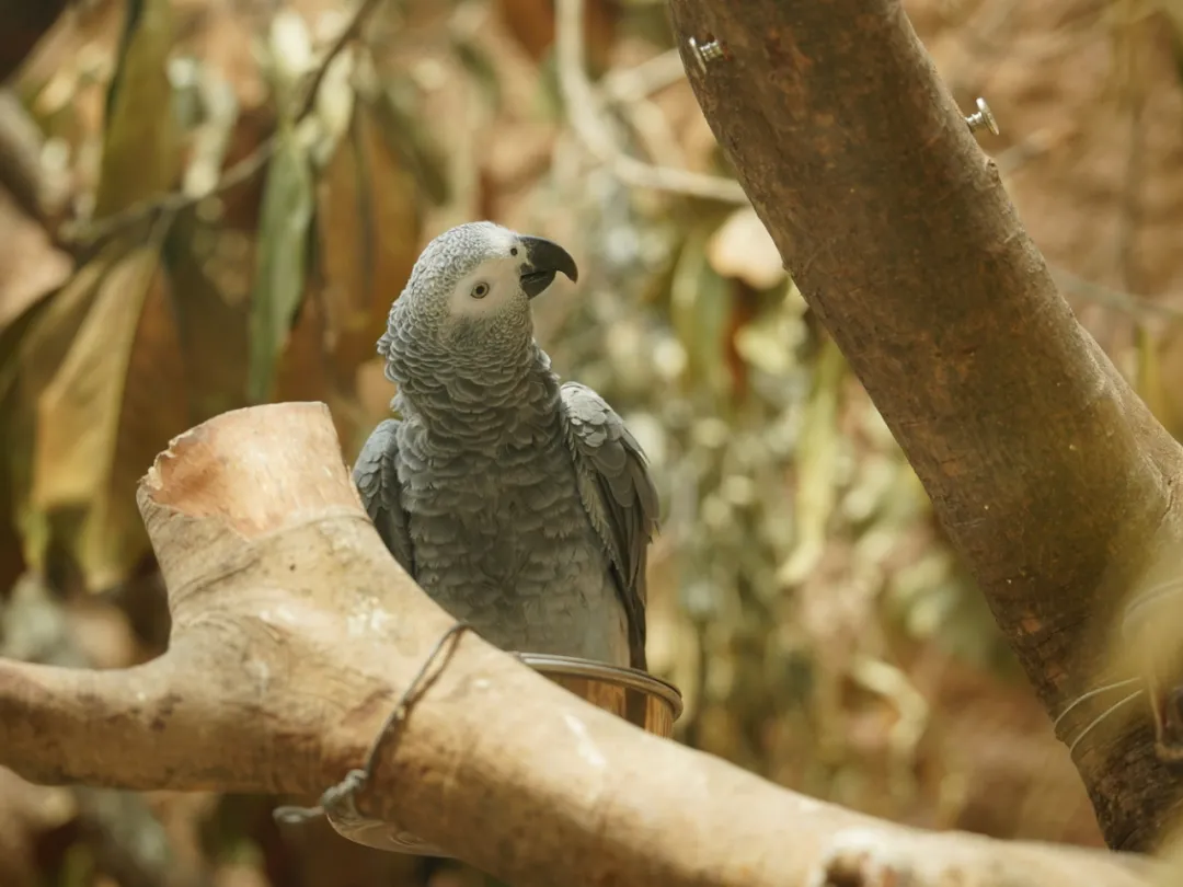 我们之所以设立这个展区,是源于一份对远方的关怀。灰鹦鹉本是在非洲天空下翱翔的智慧生灵,我们希望在这里,为这些被救助来的灰鹦鹉们重建一片能够自在生活的家园。