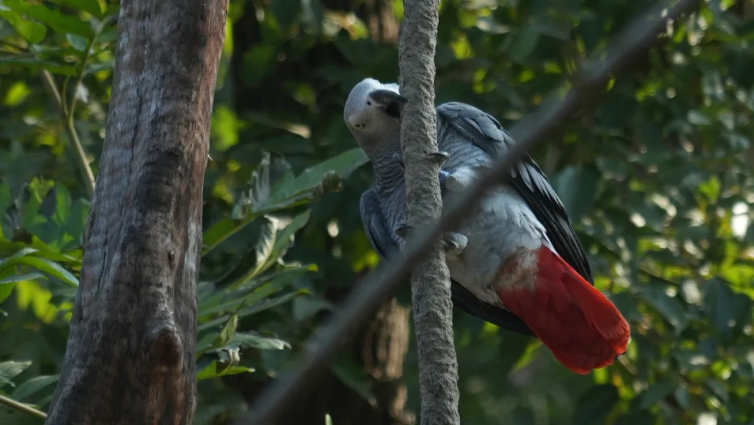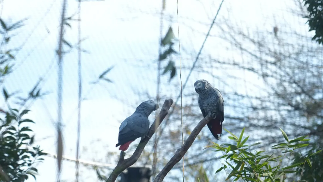住在红山的九只灰鹦鹉都是救助而来,每一只都有不同的过往,这让它们在社交行为上也会有些许差异。作为高度社会化的鸟类,它们拥有复杂的沟通系统和出色的认知能力——无论是并肩而立时的无声默契,还是晨间此起彼伏的呼应交谈,都是人类再温柔的呵护也无法替代的、属于它们自己的完整世界。