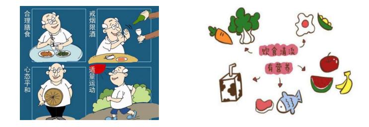 (2) 健康饮食:多吃水果蔬菜等高纤维食物,每人每餐放盐不超过2g,每人每天食盐摄入量控制在6g以内2,选择优质的蛋白,如廋肉、鱼类、豆类。